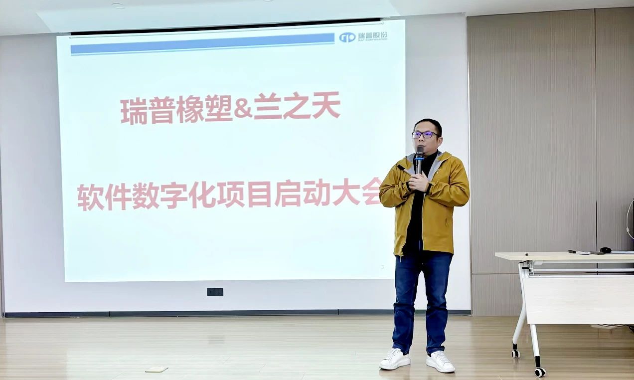 瑞普橡塑常務副總馬廣豐在發言中回顧了企業在數字化探索道路上的過往歷程,感慨萬千。他坦言,老舊的ERP系統已無法滿足企業日益增長的管理和運營需求。此次與蘭之天的合作,是瑞普橡塑數字化轉型的關鍵一步,也是企業實現智能化、數字化的重要契機。他要求全體員工以飽滿的熱情和堅定的信心,積極參與到數字化轉型的偉大實踐中去,共同為瑞普橡塑的美好未來貢獻力量。